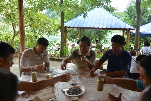 为搞好本次自助烧烤活动,集团综合一部的同事们早早做好了准备,大家分工合作,准备了丰富的食材、饮料、水果等,竹源山庄湖边优美的环境让人心旷神怡,也让人胃口大开。随着烤炉一架,不一会儿,带着香气的炊烟就袅袅升起,不禁让人食指大动。大家都在彼此传递分发烤好的美食。此时此刻,无论领导和员工都已不在乎自已的身份和“形象”,大口吃肉,大声谈笑,在青山碧水间畅所欲言,工作的烦恼早已抛到九霄云外,大家都在尽情地享受着快乐。