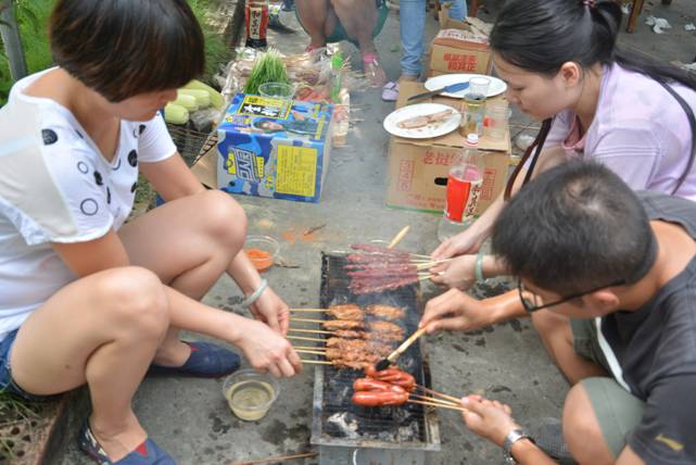 集团员工在认真烧烤中